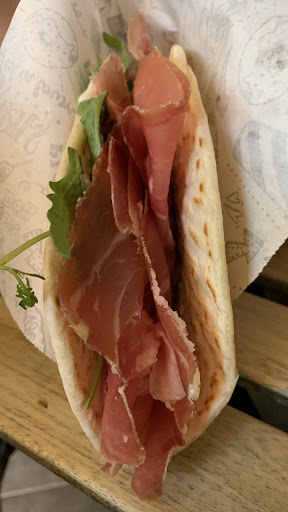 Read moreDa romagnolo posso dire di apprezzare in maniera notevole questa piadina. I 4 impasti a scelta sono un'ottima cosa perchè ti permettono di spaziare sulla scelta anche sull'impasto e non solo sugli ingredienti. In particolare quello con farina di noci, molto particolare. Io prendo spesso quello all'olio al posto che allo strutto, adatto quindi anche ai vegetariani. Da apprezzare anche la quantità delle combinazioni degli ingredienti, anche molto particolari, a differenza delle classiche piadinirie. Ampio uso di aceto balsamico, pecorino, salsiccia cruda piccante e altre piccole finezze. Il posto non è molto grande e adesso che è estate hanno messo anche qualche tavolino fuori. Da apprezzare molto anche le birre alla spina, tra cui una notevole leffe rossa, se non sbaglio. Ieri sono stati molto lenti nella preparazione delle piadine, forse a causa del fatto che parte del...