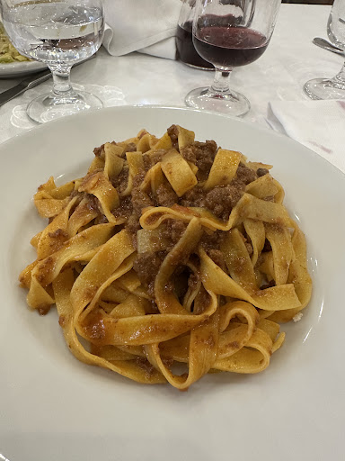 DON'T GO THERE IF YOU'RE A TOURIST. When we came in, the owner (old, stocky man) "welcomed" us with two words: "green pass?!". And that's it. We were really hungry and didn't have time to look for something else, so we decided to stay. And that was a huge mistake. There's a very strange vibe at this place. The owner with his angry face and the waitress were standing few meters behind us and observing, because we were the only ones inside at this moment. No music, no radio, just awkward silence. The waitress was polite, but really tense. We ordered minestrone, four different pastas and wine.Then a few other people (italian) came for lunch. The owner was chatting with them and behave normally, but to us the best he could offer was irritated look. My friend got the soup at the same time as the second course. It was really average in taste. Famous tagliatelle bolognese (al ragu) was a mistake. Too salty, very poor in tomato sauce, pasta was overcooked. When we wanted to pay, the owner just came and said the amount to us. No receipt. I had to ask waitress and then she printed it. The whole interior (including bathroom) is begging for renovation. Italian hospitality?...