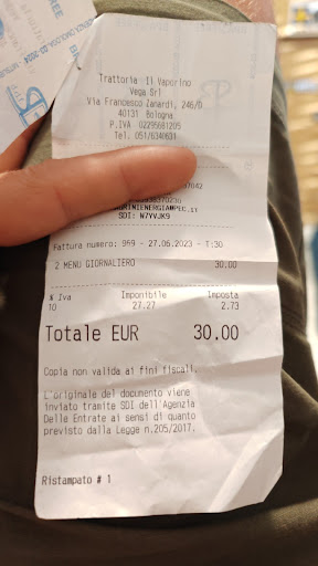 Read moreHo pranzato con un mio collega prendendo per entrambi il piatto del giorno 18€ 3 spaghi con le vongole in mezzo a 2 gamberoni di numero preciso. 2 piatti del giorno un 75 ml di acqua naturale, 1 quarto di vino bianco alla mescita e 2 caffè. Paghiamo e la cassiera mi fà un 54 euro di tutto. Ho chiesto la fattura per il rimborso spese aziendale e mi risponde: te la faccio fare perché io sono imbranata e non ci capisco nulla. Le lascio i dati e mi dice : fidati te la mando direttamente in azienda. Dopo aver incassato la cosidetta "pettinata" io e il mio collega andiamo a lavorare. Durante il lavoro si parla dell'esperienza e si arriva alla conclusione che dopo aver pagato salato la sensazione era che non avrei avuto il rimborso per mancata fatturazione. La curiosità crescente ci ha spinto nel ristorante a chiedere il cartaceo dello scontrino. Di fatto dopo scuse goffe hanno prodotto un primo scontrino di 30€ e aggiunto in un secondo momento per mia insistenza un altra fatturazione di 24€ documentate sulle foto. Esperienza da non fare mai più ovviamente e per chi legge consiglio vivamente di stare...
