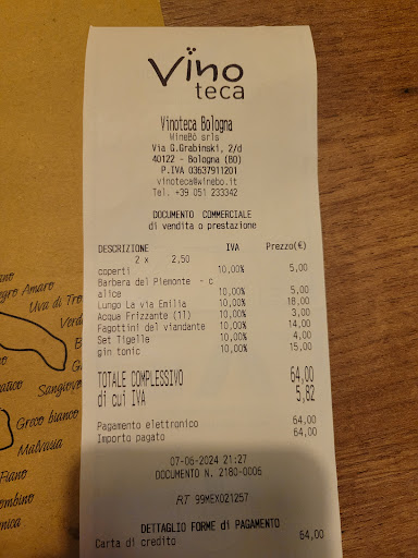 Read moreCena con Amici Non solo vino ma anche birra e RUM tanti RUM. Abbiamo mangiato tre buonissime Tartar di mucca piemontese. Un primo molto saporito. Quando hai troppa scelta diventa difficile scegliere il vino giusto, per fortuna che il gestore ci ha saputo consigliare con pazienza. I piatti sono curati e ben descritti nel menù, inoltre ho apprezzato tanto il servizio pragmatico senza tanti fronzoli. Su nostra richiesta il gestore non ha lesinato spiegazioni su provenienze e caratteristiche dei Rum proposti. Finalmente ho capito cosa vuole dire "BEVI CONSAPEVOLMENTE" !! o era "RESPONSABILMENTE" ?? BHE COMUNQUE SIAMO STATI BENE. Grazie a tutto lo staff per l'accoglienza.