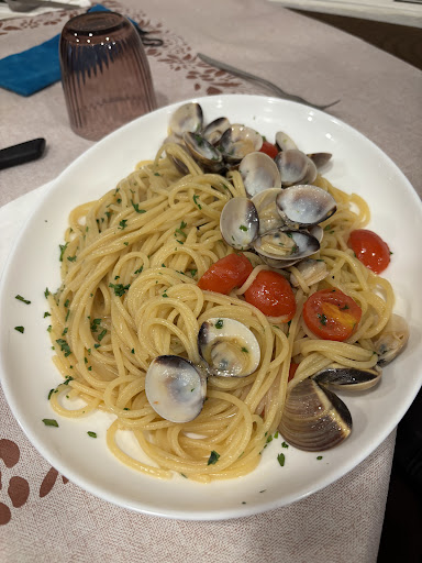 Una pizza quasi decente ma con l’impasto del cornicione ancora umido tipo mappazzone. Poi la ciliegina..due spaghetti alle vongole ( da 14 euro cadauno) che credo di poter dire precotti, e stracotti al punto che la pasta si sgretolava in bocca. Una sensazione orrenda. In sostanza un’acqua, un vassoio di patatine fritte surgelate, una pizza e due spaghetti “colla per manifesti” per 60 euro. Il servizio all’altezza del resto, il cameriere che dimentica di portare gli ordini, la pizza divisa in due piatti per loro libera scelta, ed il proprietario che ci parlava di impianti dentali, cosa che si sa, a tavola fa sempre piacere.
