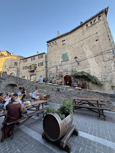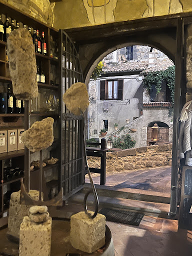Upon arriving in Bolsena and unloading for our stay, this is the very first place we spied. Little did we know then that it would be the jewel of our 5 day visit. This is the most charming Enoteca, run by its new owners Andrea and Sofia. We began almost every day and ended every night here, except for the 1 day they were closed. We were greeted warmly each time by the owners, and they always served the most delicious wines and spritz, along with a variety of wonderful bruschetta and torelli snacks. It is a cozy place to settle in for the evening and engage in conversation with the owners and patrons. We met some very lovely people and the talk revolved around music, wine, food, location and just life in general. We took part in a couple impromptu tastings, and after a while I gave myself over to whatever wine they recommended for me. They even helped us set up a great tour at a nearby winery. They are a credit to Bolsena and play no small part in why we wish to return...