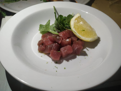 We were staying in Bolsena and our son and partner had visited three years before and were keen to revisit. We were shown to a table in the beach beneath the canopy. Lovely on a balmy night in early September. The service was steady nothing hurried or paced. The waitress was friendly and chatty speaking good English for us. Our wine choices were uncorked at the table. The white wine we selected was crisp and dry though lacked any depth or volume in flavour and disappointed me. The menu for a non pasta eater was very limited. Pizzas yes but little else. There was a relaxed atmosphere even though the restaurant was packed. My meal was a locally made taglietelle with lake fish mix and almonds. Flavoursome but texture was odd. The almonds had been crushed and were in every mouthful making for a gritty mouthful. The pasta was thin and knobbly quite heavy on the palette. Our party enjoyed their food. The restaurant attracted lots of locals so a good advert, but sadly not for me the best...