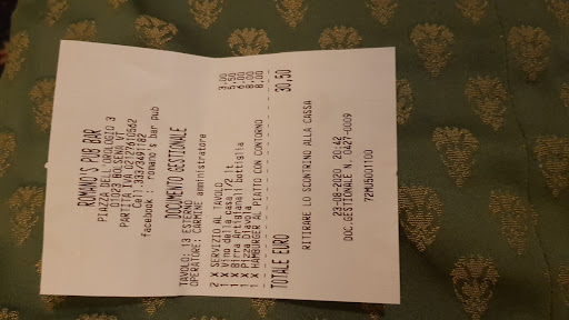 Read moreMA PER L'AMOR DEL CIELO!!!!..mi sono fermata a cena con mio marito e , a parte averci messo delle tovagliette di carta su una tovaglia già sporca, ci è stato servito un tagliere di salumi con prodotti palesemente del discount e una pizza insapore di una forma che potrei fare anche io a casa!!!il tagliere al costo indecente di 18€!!!! E pizza con un formaggio sopra che sembrava tanto la sottiletta. Io personalmente non lo consiglio a meno che non vi piaccia buttare i soldi.... aggiungo questa parte in risposta al titolare il giorno 15/07 Le rispondo anche io con cortesia dicendole che il suo super tagliere lo ho mangiato perché affamata .....ma questo non significa che ciò che lo componeva fosse all'altezza del grandissimo tagliere Romano's..per ciò che riguarda le pizze a casa le faccio meglio...e in più lavoro in una pizzeria a taglio molto conosciuta....mi creda...so quello che dico. Per quello che riguarda la tovaglia.....mi va benissimo la giustificazione del fatto di essere pub... è vero....ma allora faccia prezzi da pub....