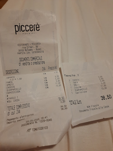 I've visited this establishment about 5 times in one year. It seems to have changed ownership recently. The food is usually good but unfortunately the staff are unprofessional and amateurs, and the lack of quality can also be traced to the pizzaioli. I ordered a pizza 3 days ago and ordered extra garlic - lot of it - being very clear to the waiter. This costs 50 cents and worked without problems the time before. When the pizza arrived I could almost not see a trace of the garlic. I told the young waiter - now another one with less than optimal attitude - and he nearly put his fingers into the pizza when he wanted to point out to me where the near invisible specs of garlic was. I told him to stop and just bring more garlic. Then nothing happened. He ignored me. So after a few minutes I had to go to the pizzaiolo and get the garlic myself, leaving my pizza to get colder. The pizzaiolo, also a young guy, was busy being on his phone and only slowly reacted to my request. And when he did give me a few spoons of garlic, he absolutely drenched it in olive oil for some reason, making it more difficult to get it out of the little cup because I had no spoon. So a little request became an unpleasant experience because the staff just didn't listen to what I was saying. How difficult is it to just bring a cup of some chopped garlic? Since I'm paying for it anyway? Another time I was there I had a pizza with too little tomato sauce. It was just tomato color. So I had to tell the young waiter to get me some more sauce. And he did, but the sauce was fridge cold and thus made my pizza cold in an instant! So this shows lack of professionalism and the importance of making a dish correct from the start. In the case of the garlic I was offered a limoncello as a compensation but I had to ask for the garlic cost of 50 cents to be removed from the tab, which was granted with some grumbling. This thing is maybe not the whole world but it shows that the staff is not paying due attention to the customer. In general restaurants in Italy aren't used to customers complaining about anything because Italians are proud and prefer not to show that they are discontent with service as it would make them appear shameful. Also restaurant staff can be arrogant and believing themselves to be faultless. I'm NOT saying this is what happened here, but in general it can be the case in Italy. Apart from this the pizzas and ambience in Picceré is quite pleasant and I hope to return...
