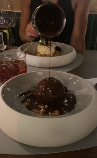 An interesting presentation of classic desserts in the author's performance, which is very unusual. The wine list is good and there is a cocktail bar. I would like to say a separate word about the correct decor and style of the restaurant: soft lighting of the hall, which helps to relax, as well as individual lighting on each table, unobtrusive music, very cozy chairs, decor elements create an absolutely relaxing mood and is suitable for romantic evenings, as well as for meetings with friends. Proper zoning of the room and the possibility of dividing the hall, suggests a more intimate atmosphere, both for the company and for couples. Thank you very much!