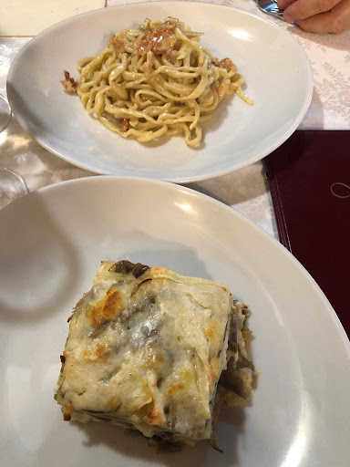 Read moreVery nice place family owned restaurant in Bomarzo. Perfect for eating pranzo and after that visit the parco dei mostri with your bellies full. We began with a nice antipasto di terra. We got very tasty bruschette with that where even the oliveoil tasted great. After that I had a perfect homemade fettuccine alla carbonara yes with eggs and the pigscheek like the tradition and my girl had a lasagna ai carciofi both were very good and you can defo taste that it is homemade. After that dolci, a very nice homemade tiramisu and a semifreddo alla ricotta. Ofcourse after that you end with caffè and a limoncello. All this quality for a very nice price.If you are in the area I highly recommend this place. We had a perfect...