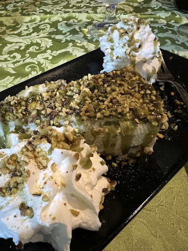 So fun and delicious! We ate inside the eclectic and charming dining room but you can enjoy eating out on the fresh air patio area just as much :) (The lovely wood bar is worth sitting at and enjoying by itself!) The burrata caprese was sublime, the smoked tuna was unexpectedly delicious, the pistachio cheesecake with the homemade reduction pistachio syrup and fresh crumbled pistachios was the best cheesecake I’ve ever eaten, the grilled veal, mushroom and arugula salad was divine!! Definitely order the homemade house red wine, and make sure to top of your meal with coffee and a digestive of aged grappa! :) Such a varied menu and wine list, we will definitely be back! Thank you Ladies! Sincerely, A retired hospitality & tourism...