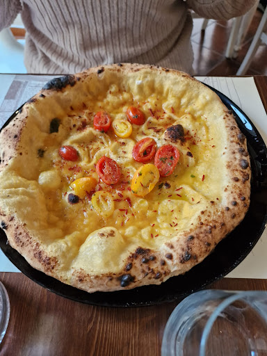 Read moreHabe heute mal wieder die neapolitanische Pizza probiert ( mit softem dicken Rand ) . Wird einfach nicht meine Lieblingspizza. Alles soll seine Daseinsberechtigung haben , aber dieser dicke Rand und ich werden keine Freunde. Zumindest sollte dann der " belegte dünne Innenbereich " geschmackvoller sein. Leider war weder der Teig an sich noch der Tomatensugo besonders italienisch. Das liegt beim Teig einfach am Industrie- Mehl , welches nach nichts besonderem schmeckt noch an der Qualität des Tomatensugo , der ebenfalls etwas fad daher kommt. Natürlich alles in allem keine schlechte Pizza , aber auch keine , an die ich am nächsten Tag noch positiv denke. Eher 08/15. Kann man aber besser machen mit den entsprechenden besseren Produkten. Die Pizza mit Zucchini Creme , Orangencreme, Walnüssen, Mozarella und Panchetta war unglaublich schwer , hatten das Gefühl, 4000 Kalorien in der Pizza zu haben. Die Neapolitana war besser , aber sehr salzig durch Oliven und Sardellen. Allerdings eben wid oben erwähnt Tomatensugo langweilig. Was allerdings ein absolutes Highlight war , war die Vorspeise : Ich hab das schon mal in Hinterland von San Remo gegessen : dünne gegrillte Lamm- Spieße, sind 12 Stück. Heissen " Rostelle " . Hervorragende Fleischqualität , einfach purer gegrillter Lammgeschmack . Also , der Service war sehr gut übrigens. Probiert es aus , wenn ihr auf neapolitanische Pizzen steht , ansonsten kein Highlight, aber auch kein Reinfall . Für mich ein bisschen ne...
