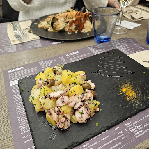 Read moreCena del 31 dicembre. Abbiamo prenotato circa un mesetto prima, per 4 persone. Dato il locale completamente pieno, il servizio non è stato lentissimo (probabilmente perchè la clientela era scaglionata su due orari e noi eravamo al primo turno delle 19). Come antipasto abbiamo preso un antipasto di mare, davvero molto buono. (un plauso alla zuppetta di ceci e cozze davvero speciale!) Come primo/secondo abbiamo preso risotto alla marinara, tagliatelle integrali con tonno, carbonara di mare e polpo con patate e olive (sezione antipasti). Tutti i primi molto buoni e direi anche abbondanti. Un commento negativo sulle tagliatelle al tonno che risultavano un po' salate (probabilmente per il tonno). Come dolce è stato preso un profitteroles e una giulia. Il pesce merita davvero tanto e anche le pizze sembravano buonissime! Purtroppo al conto è stato spiacevole scoprire che i profitteroles (non presenti sulla carta ma riferitoci dal personale) costavano di più di tutti gli altri dolci presenti sulla carta e al momento della comanda non era stato riferito. Penso sia più una questione di correttezza in quanto per tre palline non avrei voluto spendere 7 euro al posto dei 5 euro come specificato per tutti gli altri dolci. Al riguardo consiglio di riferire sempre al cliente se ci sono delle variazioni di prezzo, soprattutto se gli altri piatti hanno tutti lo stesso prezzo (in questo caso tutti gli altri dolci).