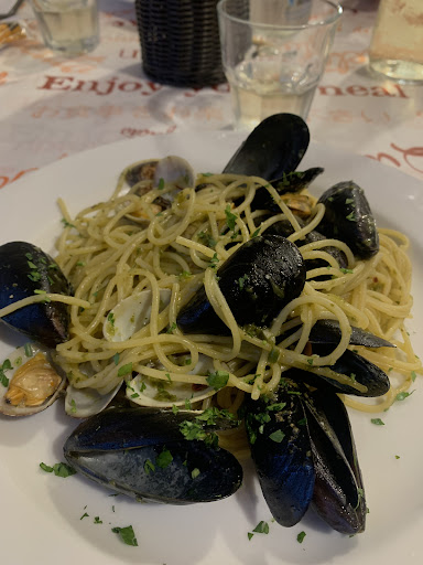 Read moreSiamo andate in questo ristorante perché ci è stato consigliato, le aspettative erano abbastanza alte… purtroppo siamo uscite da lì deluse. Ho prenotato alle 20:30, siamo arrivate puntuali. Ore 20:40 ci è stato preso l’ordine, due primi e un secondo. Siamo andate alla cassa alle ore 21:15, dopo aver preso il caffè al banco. Io ho preso un piatto di spaghetti con vongole, cozze e asparagi di mare arrivato 5 minuti dopo aver preso l’ordine. La mia ragazza ha preso le pennette al sugo di calamari e piselli. Capisco la precottura della pasta per motivi organizzativi, ma per lo meno mi aspetto che sia legata bene con tutti gli ingredienti contenuti nel piatto. Come secondo abbiamo ordinato tonno in umido con patatine fritte, da dividere in due. Il tonno completamente asciutto e le patatine fritte sapevano di pesce. Oltre a questo, personale molto gentile e accogliente, il posto un po’ chiassoso per i...