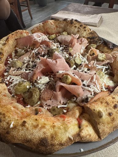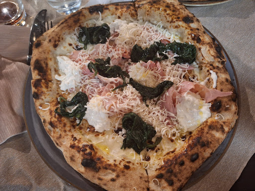 Iniziamo dal locale, l'esterno si presenta più come un negozio isolato un garage anche se di passaggio ed in mezzo al nulla sulla statale 106, non esattamente il massimo, l'interno abbastanza curato ma con una sala unica e non insonorizzate. Esci con il mal di testa come dopo essere stato in discoteca. Bello ad effetto il bancone pizza con pizzaiolo e forno. Patatine fritte buonissime e abbondanti. Stuzzicheria meno. Coca cola marca italiana imbevibile sapeva di medicina ma hanno solo quella. Le pizze sono fatte sia tipo Napoletana che Romana bassa croccante. Noi le abbiamo assaggiate entrambe. Impasto molto buono per tutte e due anche se a mio personale parere la romana croccante è strepitosa, complimenti davvero. La Napoletana è molto buona ma è la solita che fanno ormai dappertutto. La qualità degli ingredienti è molto alta e commisurata comunque al prezzo della pizza. I gusti e gli assemblaggi degli ingredienti non mi sono affatto piaciuti, grande delusione. Il culatello ad esempio è davvero straordinario e si sente non è il solito crudo del discount...le zucchine alla scapece sulla pizza erano immangiabil, la polvere di olive idem ecc.ecc. La Margherita dei bambini è stata la cosa più buona. Non capisco perché si cerca di storpiare un prodotto potenzialmente ottimo con la ricerca di sta pizza gourmet, fatta da uno chef magari, che sinceramente ha stancato, soprattutto se rivisitata in maniera estrema. La semplicità molte volte è la cosa più buona e allo stesso tempo più difficile da realizzare...in bocca al lupo...forse torneremo ma solo per la Margherita e...
