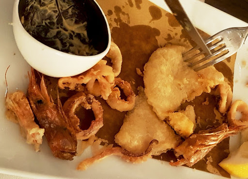 Le premesse c'erano tutte: bellissima vista del mare al tramonto, cameriere brillante e menu non troppo ampio, solitamente sintomo di un ristorante di livello. Cominciamo con due antipasti fatti da jamón serrano, burrata e fugassin. Arrivano in tempi ragionevoli e ci fanno ben sperare per il proseguo. Ma poi inizia un'attesa a dir poco estenuante per la portata successiva. Da sottolineare anche il fatto che il locale non fosse totalmente pieno. Questo, unito alla già citata ridotta varietà dei piatti, aumenta ancora di più la gravità del pessimo servizio.