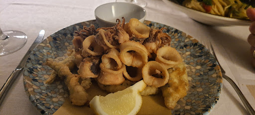 Dopo numerose sollecitazioni veniamo serviti alle ore 21.48 (piú di un'ora e mezza per tre piatti!!!). I due primi - fusilloni con gamberi e pomodoro pachino e tagliolini ai frutti di mare - sono senza infamia e senza lode. Semplici e non particolarmente ricercati, appena sufficienti ma fanno il loro (certo, dopo due ore la fame è anche passata...). La zuppa di pesce invece non può essere definita tale. Era meno di un misero guazzetto con qualche frutto di mare, quasi un'insalata. Basti solo pensare che i tre crostini di accompagnamento sono ben superiori al pane effettivamente necessario per fare la scarpetta dell'inesistente sugo. Oltretutto, il condimento dei tagliolini è il medesimo di quello della zuppa, il che rende l'attesa ancora meno giustificabile.