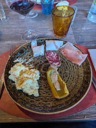 Gli antipasti sono numerosi e generosi. Una menzione speciale va senza dubbio al lardo di Patanegra con miele e mandorle tostate, un abbinamento raffinato e ben bilanciato. Tutto, comunque, è stato apprezzato con entusiasmo.