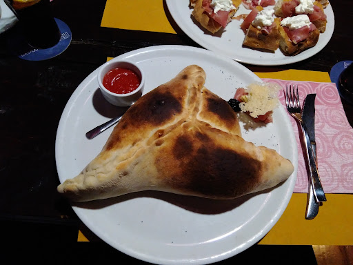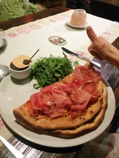 La recensione è lunga, ma voglio spiegare perché non tornerò mai più qui. Non eravamo mai stati in questo locale e quindi non sapevamo come fosse all'interno. Abbiamo telefonato per prenotare qualche giorno prima. Prenotato per Sabato. Siamo arrivati in orario, il ristorante era pieno ma non pienissimo. Abbiamo aspetto 2 ore per una pizza cattiva e costosa. Il ristorante ha una sala appena si entra sulla destra con tavoli apparecchiati con tovaglia e tovaglioli di stoffa, ma la cameriera ci ha fatto scendere delle scale e ci ha fatto accomodare nel sottoscala in un piano interrato senza finestre e vicino alla porta del bagno (un via vai continuo e fastidioso) il tavolino in legno con tovagliette di carta (pagato 1,50 per il coperto a testa) le sedie e le panche dure e troppo alte per il tavolino troppo basso e piccolo anche solo per 2 piatti da pizza. Dopo 30 minuti è finalmente arrivata una cameriera col menù, dopo altri 30 minuti ci ha chiesto cosa volevamo mangiare. Viste le pizze dei tavoli vicini (più sottili di un ostia) abbiamo chiesto se si poteva fare una pizza più alta, la cameriera ci ha consigliato una focaccia. Io ho preso un calzone farcito prosciutto e funghi. Nel frattempo sono arrivate altre persone che sono state servite prima di noi e poi alte ancora (3 tavoli). Dopo un'ora e mezza di attesa ho chiamato la cameriera che si è scusata per la lunga attesa e ci ha detto che le pizze sarebbero arrivate dopo 5 minuti.... In realtà ne sono passati altri 30. Quindi abbiamo aspettato 2 ore prima di poter mangiare. Nel frattempo... vicino al nostro tavolo c'era anche un'altra porta. Una sala giochi per bambini... La nostra doveva essere una serata tranquilla e invece siamo finiti in un ristorante con annessa sala giochi (non lo sapevamo) c'erano molti tavoli pieni di gente e nella sala giochi c'erano almeno 30/40 bambini... Urlanti.... Che andavano correndo avanti e indietro ai tavoli dai genitori.... Alcuni senza scarpe o con le scarpe in mano... Vicino alla sala giochi c'era un mobiletto con dentro le posate pulite con una vetrinetta che le cameriere hanno sempre lasciato aperta. Non è molto igienico visto che i bambini ci infilavano dentro le mani. La cena è stata un disastro, non riuscivamo a parlare per colpa del frastuono, logicamente... ci è venuto il mal di testa... un ristorante non può diventare peggio di un parcogiochi, ci vuole un po' di educazione, mia mamma mi ha insegnato a stare a tavola in silenzio fino a fine cena. Non è difficile, non capisco perché i bambini di oggi non riescono ad essere più educati e più silenziosi. Ma la goccia che ha fatto traboccare il vaso è che dopo 2 ore di attesa ci è arrivata una focaccia non tanto grande (9 euro) e il mio calzone è stata una vera delusione. La pasta sottilissima e bruciata, e dentro zero mozzarella, qualche funghetto e UNA sola fetta di prosciutto cotto... UNA SOLA FETTA. (nel piatto in una ciotolina c'era un po' di sugo di pomodoro da aggiungere al calzone. Non capisco perché non l'ha fatto il pizzaiolo) non so perché nel piatto c'era anche un pezzo di carne cruda con delle palline nere sopra dal sapore orrendo (ne ho assaggiata una ma non ho capito cosa sono quelle palline). Il calzone farcito più cattivo e più vuoto che io abbia mai mangiato. (9 euro). Totale 25 euro per 2 pizze e 2 bibite. Siamo andati via alle 22.30 senza prendere altro. Siamo tornati a casa stanchi, col mal di testa e affamati. Se un pizzaiolo e 2 cameriere non bastano dovrebbero assumere più personale. NON si può ASPETTARE 2 ORE PER UNA PIZZA . Nonostante avessimo prenotato. Oltretutto ho dovuto fare una doccia e buttare i vestiti in lavatrice perché puzzavo di cibo e di chiuso dalla testa ai piedi. Ci sono pizzerie più economiche che ti fanno mangiare bene e a buon prezzo dopo pochi minuti anche se piene di gente anche senza prenotazione. E PER RISPONDERE al PROPRIETARIO. Non mangio pizze da asporto, ho girato mezza Europa e sinceramente ho mangiato in molti ristoranti. NON solo i genitori dei bimbi dovrebbero stare bene ma tutti i clienti e nelle foto non si...