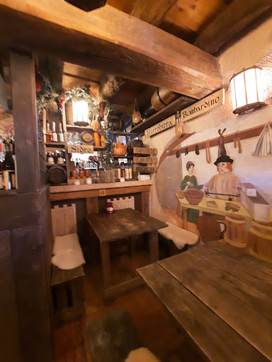Read moreEsperienza più che positiva. Ambiente confortevole e decisamente originale con posti a sedere esterni ricavati sotto precarie strutture lignee e locale interno con bar al PT e posti a sedere al primo piano. Dalle stoviglie, alle suppellettili, al tovagliato, ai decori alle pareti....tutto ha il " profumo di un passato ormai lontano". Persino l'abbigliamento delle gentilissime e competenti signore al banco richiamano stili, tessuti e colori dell'epoca. Un plauso anche al menu: su tavolette di legno con stringhe in cuoio, troverete le storie e le leggende locali insieme a proposte culinarie numerose e diversificate per tipologia. Menù dai sapori e piatti tipicamente medievali; quello moderno per coloro i quali hanno un palato difficilmente adattabile agli antichi sapori o che non vogliono osare; infine il menu bimbo. Stesse diversificazioni per le bevande. Consiglio l'anatra all'arancia, il risotto alle zucchine, brie e granella di pistacchio e la tagliata di manzo. I prezzi sono nella norma nonostante l'estrema vicinanza al castello (non visitabile in caso di feste private). Molti altri se ne sarebbero approfittati. Questo è, a mio avviso, un ulteriore punto a favore dei gestori del ristorante che curano personalmente anche i banchetti al castello. Originali anche i liquori casarecci dalle fragranze molto particolari. Gentilmente ci hanno fatto assaggiare idromele ed altro. Due grandi parcheggi a pochi passi e ampio spazio a verde per picnic e giochi all'aperto. Eventi a tema interessanti. Da lì potrete iniziare la discesa alla grotta azzurra. Bastano un paio di scarpe da ginnastica. 20 min di discesa senza grossi problemi, né vestiario specifico (io sono andata con un tubino di cotone sopra al ginocchio). Lascerò altra...
