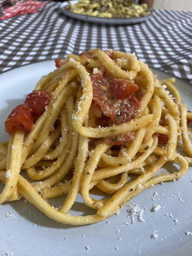 Read moreDopo aver visto le recensioni positive abbiamo prenotato per pranzo. Siamo stati accolti con cordialità e gentilezza, riservandoci un tavolo adatto anche alla presenza della nostra cagnolina. Abbiamo iniziato con un antipasto per 2 (tagliere di salumi, formaggi, ricottina, bruschette con olio buonissimo, sottaceti e crema di peperone gustosa e perfetta per accompagnare il piatto). Per il primo abbiamo chiesto di consigliarci ed abbiamo preso gli stracci antrodocani, una sorta di cannelloni ripieni di un ragù delicato e formaggio: buonissimi! Per secondo un filetto e contorno di cicoria e patate. Ottimo anche il caffè (nei ristoranti non è scontato trovarlo buono). Prima di andare via abbiamo fatto due chiacchiere con il proprietario che ci ha dato il trafiletto di un giornale che racconta la storia del ristorante e l'origine del suo nome, ma non voglio spoilerare nulla....