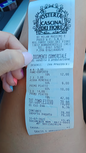 Per me e Watson non è stato semplice trovare un locale per questa fine settimana: affaccendati sino al venerdì, alla sera i ristoranti delle province limitrofe a quella di Novara sono spesso al completo. È stato quindi per esclusione che abbiamo fermato un tavolo all'osteria Cascina dei fiori a Borgo Vercelli. Non segnata in modo adeguato sul territorio (i cartelli indicatori si trovano se si proviene da Vercelli e non per chi arriva da Novara), la Cascina dei Fiori è un piccolo locale country che, pur ricordando nei segni la campagna circostante, ha un che di britisch così come il titolare che funge anche da mètre e da cameriere avendo frequentato l'istituto alberghiero di Varallo ed avendo lavorato (anche durante gli studi) nell'albergo dei genitori sulla riviera adriatica. Il padrone di casa, gentilissimo, professionale, ma affabile ci porta velocemente menù e carta dei vini. Cominciamo con un'entrée a base di acciughe alla veneziana; l'antipasto: uno sformato alle verdure e fonduta di taleggio è spettacolare così come il primo, un risotto allo zafferano ed asparagi. Superlativo anche il mio secondo, la guancia di vitello al barbaresco su letto di purè (non mi è neppure stato dato il coltello tanto era tenera! ) così come quello di Watson, il petto di faraona cotto sottovuoto e rosolato con bacche di ginepro, accompagnato da crema di lenticchie rosse e curcuma e da radicchio. Anche il dolce (che, purtroppo ancora una volta viene indicato come sorbetto), del gelato al limone e mandarino, pulisce stupendamente la bocca. Il caffè (anche se non nelle mie corde per una miscela troppo amara per i miei gusti) conclude la cena. Accompagniamo il tutto con 2 bottiglie da 0,75 di acqua Sanpellegrino ed una bottiglia di Monferrato rosso doc "Le Grive" dell'azienda Forteto della Luya di Loazzolo (un cuvee di pinot nero e Barbera), elegantissimo. In due spendiamo € 189 dove il vino ha pesato per € 40 e il coperto per € 4 ciascuno. Da menzionare la serietà dello chef che, lasciata la cucina, si è presentato ad un terzetto di avventori che avevano chiesto il risotto allo zafferano ed asparagi appena prima del dolce (ed essendosi presentati in sala non certo all'apertura alle 20); scusandosi ha dovuto negare il piatto perché la comanda era arrivata oramai troppo tardi per una tale preparazione già lunga di suo e perché la cucina è tarata per una sola...
