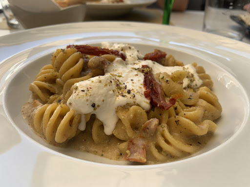 RISTORANTE - 11.09.2025 A cena con un gruppo di amici. La location mi è piaciuta molto, l'ho trovata accogliente, curata ed originale. Il personale gentile, attento ed elegante nel servizio. I piatti si presentavano alla vista tutti molto bene, impiattamento veramente curato. Al palato era tutto buono, senza però mai sorprendere. Mi ha deluso il risotto mantecato al vermouth...premesse ottime, ma poco saporito. Valida la...