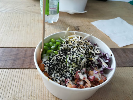 Ottima l'idea della composizione personalizzata dei poké. Rende questo piatto misto accattivante anche per i bambini. Gli ingredienti sono freschi e gustosi. C'è ampia scelta su tutti tipi di ingredienti, meno sulla quantità di abbinamenti dei condimenti. Il locale e il dehors sono semplici, ma ben ambientati. Il locale interno è rilassante e silenzioso, ma forse un po' di musica a tema di sottofondo non guasterebbe. Il personale è gentile. Piatti e posate sono riciclabili.