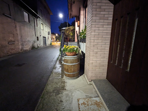 In occasione della 50° mostra del vino di Boca (fra l'altro con prodotti di altissimo livello, dai nebbioli ai Boca), io e Watson ceniamo in un locale di Borgomanero: l'Osteria dell'Orcobacco, un ristorante informale con una quarantina di posti. Purtroppo la sala è accessibile percorrendo una scala esterna di pochi gradini che la precludono ai disabili anche se fornita di montascale, per gli spazi un po' angusti all'interno. All'arrivo l'accoglienza é cortese ed il personale ci fa accomodare al nostro posto: un vecchio tavolo da trattoria in cui la tovaglia è stata sostituita da un disco di vetro decorato a mo' di sottopiatto. Il menù è disponibile su una lavagna appesa ad una delle pareti oppure recuperabile tramite un qr code. Ordiniamo 2 millefoglie di melanzane, zucchine e pomodori con provola affumicata e pesto di rucola ossia delle verdure cotte al forno in strati alternati e poi gratinate (sorta di melanzana alla parmigiana, ma tutta a base di verdure); come primo piatto io e Watson decidiamo per dei tagliolini con ragù d'anatra e asparagi mentre di secondo ordiniamo 2 ribeye di manzo irlandese (sostanzialmente una costata disossata) con patate al forno (con la buccia) e maionese al basilico e lime. Tutto è squisito e le porzioni sono generose. Accompagniamo la cena con una bottiglia di Motfrei, uno dei 2 nebbioli di Brigatti, ed una di acqua minerale Lurisia. A fine pasto un ottimo gelato al lampone. In due spendiamo € 150. Considerato che il locale è piccolo ed il servizio è svolto con cura ed in oltre lo scontrino è preciso e dettagliato (non sempre è così…), il conto è corretto. Lo consigliamo per chi ama mangiare bene ed abbondante, ma con prodotti di qualità in un ambiente tranquillo ed informale, ma...