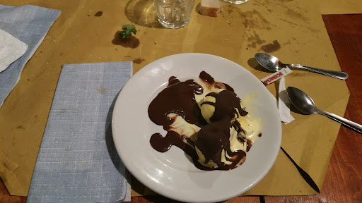 Read moreMAI PIÙ SPORCO. NIENTE BANCOMAT Amici organizzano una serata in questo locale. Prezzo fisso menù 30 euro a testa. Il locale sembra carino all'arrivo, tanti sali e scendi in un mini labirinto. Ma l'interno è decisamente sporco. Troppa chincaglieria appesa alle pareti, polvere ovunque. Iniziano con gli antipasti, vanno a singhiozzo perché aspettano che tutti i tavoli siano pronti contemporaneamente per le portate successive. Antipasti con tanta focaccia.... Per riempire. Poi ravioli burro e salvia e al ragù di manzo. Niente di speciale a parte un paio di ragni sulla parete alle nostre spalle. Secondo una trota al forno, secca immangiabile e poi la tagliata.... Stracotta e carne durissima immangiabile. Lumache non buone. Arriva il dolce, io chiedo il semifreddo al Torroncino. Arrivano 2 palline di gelato all'amaretto con cioccolato fuso, vedi foto. Il caffè lo abbiamo atteso 20 minuti, poi ci siamo rotti e c'è ne siamo andati. Nel mentre, andando in bagno si passa davanti alla cucina, date un occhio, gatti che dormono sulle postazioni di lavoro. Zozzume ovunque. Da precisare, il vino è compreso ed è a volontà. Io non bevo ma alcuni al nostro tavolo come in altri erano belli alticci. Anche il titolare e cuoco, sempre dietro al banchetto cassa, ho posizionato sopra lo stereo un bicchiere, beve a più non posso, infatti biascicava al momento del conto. Oltre ogni tanto vederlo impegnato a ravanare per sistemare i gioielli di famiglia. NIENTE RICEVUTA e NIENTE BANCOMAT. Esperienza traumatica. Per chi da giudizi positivi, consiglio di provare il locale rimanendo...
