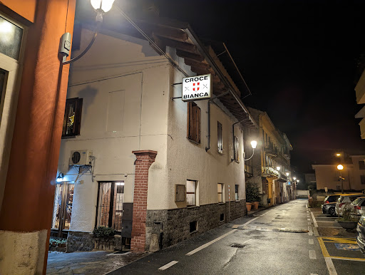 A volte si trovano delle perle nascoste e quando le si trovano senza averle cercate, la soddisfazione è ancora maggiore. È quanto è accaduto a me e Watson nell'ultima indagine enogastronomica svolta in quel di Borgosesia. La trattoria Croce Bianca ci era stata suggerita da addetti del settore enogastronomico come un locale storico di questa cittadina della Valsesia in provincia di Vercelli. Si è quindi prenotato per tempo sapendo che gli ambienti o meglio l'ambiente unico del Croce Bianca era di capienza limitata (al massimo trovano posto 60 persone). Come nostro solito giungiamo attorno alle 19.30, ma la sala accoglie persone già da mezz'ora prima. Siamo ricevuto dal giovane personale (una ragazza ed un ragazzol, molto cortese ed efficiente. La sala, con volte a botte, è calda ed accogliente; i tavoli tradizionali sono coperti con tovaglie sintetiche, ma piacevoli al tatto e comunque di buon gusto a cui si abbinano tovaglioli in carta, ma con un'eleganza inaspettata. Ci vengono rapidamente consegnati menù e carta dei vini a cui è aggiunta una lista di piatti fuori menù. In quest'ultima sono quei piatti possibili con materie prime freschissime disponibili solo occasionalmente. Ecco che fra queste portate si trova la trippa che per sua natura deve essere di giornata. Una bella caratteristica del menù è che alcuni piatti sono presenti in 2 formati, piccolo e grande, in modo da poter assecondare al meglio il proprio appetito. Io e Watson ci orientiamo sul menù alla carta dove scegliamo entrambi come antipasto un piatto piccolo (che tanto piccolo non è!) di vitello tonnato, come primo del risotto mantecato con la toma per me e dei ravioli per Watson mentre di secondo entrambi ci orientiamo su una tagliata di controfiletto con riduzione accompagnata da patate al forno; concludiamo con un sorbatto (come sempre aimè non è sorbetto , ma è un gelato al cucchiaio) al limone e salvia oltre al caffè di chiusura. Accompagniamo la cena con una bottiglia di Mesolone (a base di Croatina) dell'azienda Barni ed una bottiglia di minerale. A fine cena spendiamo in 2 € 113. Tutto è squisito e freschissimo: il vitello tonnato e la tagliata si squagliano in bocca; il sorbetto è sublime e la cucina è rapida. Anche i bagni sono ordinatissimi. Solo il rumore a fine serata è un po' fastidioso, ma questo non è dipeso che dagli altri commensali. In conclusione un locale da non farsi scappare,...