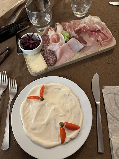 Read moreÈ stata una sorpresa, nonostante non capissimo dove fosse l'entrata e il locale, stile ristorante di montagna degli anni 70, abbia bisogno di una rimodernata, ci siamo trovate più che bene. Accogliente senza pretese, ci siamo sentite a nostro agio. Il menù che offrono è tipico della tradizione, con ottime materie prime, e porzioni abbondanti. Gentilissimo il personale. Assolutamente consigliato, non mancherò...