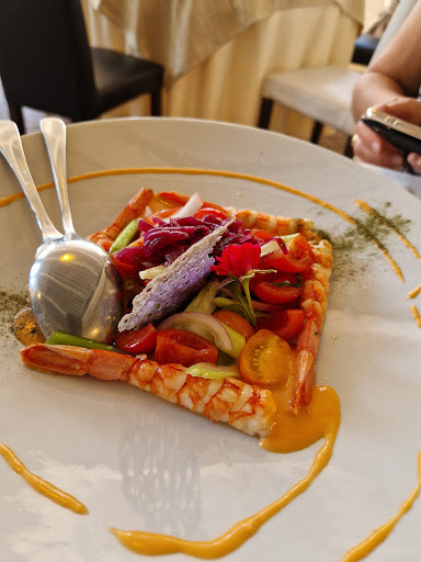 Siamo arrivati qui consigliati da persone del luogo. Ristorante all' interno dell' hotel. Ambiente molto molto carino, romantico. Servizio ottimo, da subito molto gentili e disponibili. Sia io che mio marito abbiamo voluto assaggiare più cose, tra gli antipasti, la tartare di branzino particolare, delicata e gustosa, i tipici culurgiones ripieni, il polpo eccezionale! Nei primi abbiamo finalmente mangiato la fregola, (una zuppa di pesce ma senza pane, con della pastina tradizionale sarda) Sublime!!! Poi dei ravioli di pesce stessa cosa. Tutto fresco e ottimo! Alta cucina. Per finire anche nei dolci, le tartellette con la creme brulé una poesia... Si sentono i prodotti di qualità e le ricette sono ricercate con abbinamenti ad hoc. Ottimo. In barba a tutti i ristoranti più famosi anche sulla costa di Alghero...dove siamo rimasti delusi. Tutto pesce congelato e cucinato male. Venite qui a rifarvi la bocca. Questo posto sarebbe da inserire nelle guide Michelin. Complimenti in cucina e a tutto lo staff. Grazie!! ( dimenticavo... il conto più che giusto,per quello che abbiamo mangiato ad Alghero ci avrebbero chiesto il doppio) Bravi,...