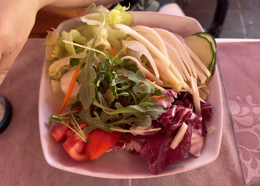 Read moreWe found this restaurant when we walked through the city. First, it was nearly 40 degrees outside, not a gust of wind, and the waiter made us sit outside when it was empty inside. We even asked if it was possible to sit inside, but the waiter answered that it was to chill inside - which was the point of sitting inside, and they had put up ventilation outside (two fans blowing over a big seating area). After we sat down, the waiter told us we could only order pizza, lasagne and salad only, which was fine. So one of us asked what salad the waiter could recommend, and he pointed to "Insalata Mista." When we got the salad, it looked like a plate for a rabbit. Poorly chopped vegetables in a bowl - not a salad. You can't even describe it as a side dish, and it looked more like a pre-prep for a dish to be made - not something you serve a guest. When we asked for the waiter who recommended this "salad", the attitude the waiter came with was just shameful and awful. He arrived with the menu, pointed out the dish, and said, "This is what you ordered, right? ok, bye" - like he did his job correctly. He wasn't interested to hear what we had to say. If something was wrong. If something wasn't up to expectations. If he could help us with something. Like an ordinary waiter would ask for. To summarize, the lasagne was tasteless and looked like it came from the microwave. The bread that came with the lasagne was rockhard and dry. The pizza was undercooked, with too much tomato sauce and barely any cheese and had zero flavor. It was one of the worst, if not the worst, experiences we had in Sardinia.