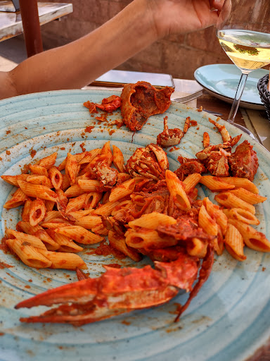 Ci siamo fermati in questo ristorante per pranzo sabato 13 agosto. Veniamo accolti con i giusti modi dalla cameriera, tuttavia dopo esserci seduti aspettiamo almeno un quarto d'ora per poter ordinare e altri 45 minuti prima anche arrivino i piatti. Ordiniamo i culurgiones e le mezze penne al sugo di granchio. Dopo la snervante attesa è stato davvero sgradevole scoprire che tra le mezze penne era pieno di frammenti di guscio, di chele e di zampe di granchio che hanno reso il piatto davvero difficile da mangiare dovendo stare attenti a rimuovere i frammenti dalle mezze penne ad ogni boccone, fino a farci desistere. Sorvoliamo sul fatto che i culurgiones fossero poco cotti e facciamo presente alla cameriera solo il problema dei frammenti di guscio. Una volta in cassa ci saremmo aspettati almeno un feedback riguardo alla nostra lamentela. Tuttavia con molta nonchalance un uomo (forse il titolare) ci presenta il conto. A questo punto abbiamo ripresentato il problema per capire se potessero venirci incontro in qualche modo. Ci ha risposto in maniera arrogante che, sebbene la cameriera avesse riferito, a lui i piatti sembravano finiti. In realtà di pasta ne avevamo avanzata metà (allego foto per correttezza). Continua dicendoci che in quattro anni di attività a loro non era mai capitato di ricevere questo tipo di lamentela. Di fronte a questa maleducazione paghiamo il conto e salutiamo dicendo che avremo lasciato una recensione su quanto accaduto. Non contento ci risponde che hanno il sistema per cancellare le recensioni negative (ora si spiega perché ce ne siano solo positive). Concludo dicendo che sarà mia cura ripubblicare questa recensione qualora venga...