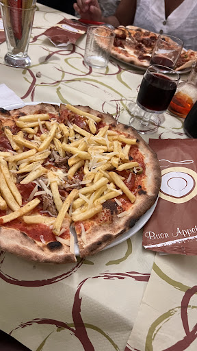 ENG: The food was amazing. Pizza is crazy tasty and the Greek food is high quality. The waiters are professional but after making some joke they became friendly and made us laugh. I cannot say it enough: the pizza is one of the most delicious I've ever eaten and I've been in many places (Naples, Rome, Trieste, Venice, Florence, Catania). Also not very expensive. A little extra: every waiter wore their mask even if we are in August, which is really rare. A true sign of respect for every customer.