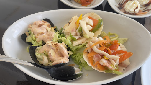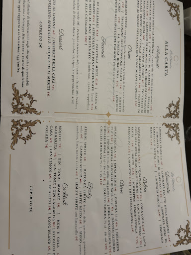 Read moreIl posto è gradevole, una bella terrazza direttamente sul mare, poco valorizzata di sera, forse un'illuminazione renderebbe ancora più bello il posto. Personale non tutto all'altezza, si passa dal professionista a ...quello meno. Gradevoli gli antipasti, abbiamo preso alcuni primi, tra cui i paccheri verdi al pescespada, burrata e pistacchi, molto buono; non alla stessa altezza le linguine alla corte d'assise. Fruttura di calamari arrivata non calda e pescespada "ai profumi" non esaltante. Ottimo il dessert. Il vino ghiacciato, nel vero senso della parola,che ci è stato però immediatamente sostituito, si è rivelato mediocre, ma senz'altro avevano vini migliori, non previsti con il menù degustazione che avevamo preso. A proposito di menù degustazione, non capisco perché abbiamo dovuto impuntarci per prenderlo solo alcuni, seppure, come osservato dalla prima cameriera, era scritto sul menù, cosa poi bypassata, visto che alcuni commensali lo volevano ed altri preferivano altri piatti e l'alternativa da noi proposta era, ironicamente, di...