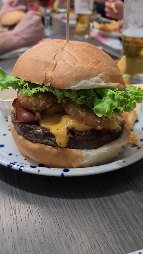 From the inside decoration to the quality of food, this restaurant is on my list of my fave ones. The deco inside is from old good movies. Menu is mostly based on burgers 🍔, but also a type of pizza 🍕 is served. Even, gigantic salads 🥗. The meat you can choose your burger could even be cocodrile or deer meat. The size of the burgers are big. Enough for a meal and they come with fried potatoes. I asked for a salad with a burger and was gigantic, I could not even finished so I took the half for home. There are some challenges for people that are able to eat big burgers in a set time so this could be fun to try if you believe your stomach can deal with good amounts of food. Parking spaces available outside because is a small little town. I highly recommend it for big...
