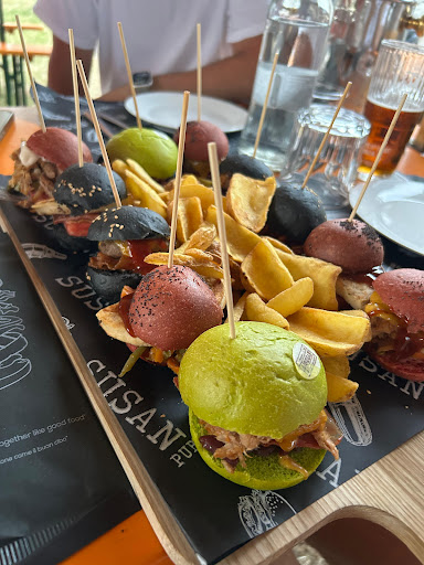 Read moreDopo aver visualizzato varie sponsorizzazioni del locale sui social, sopratutto della formula AYCE, abbiamo deciso di provarla anche noi ieri sera, prenotando per due persone e chiedendo di stare all’interno del locale. Una volta arrivate abbiamo notato che c’erano dei problemi con la nostra prenotazione, in quanto il cameriere era in difficoltà a trovare il nome della prenotazione. Una volta trovato ci hanno detto che ci avrebbero fatto accomodare fuori dal locale (a differenza di quanto detto in prenotazione). Locale piccolino, ma provvisto di ampio spazio all’esterno con tavoli e panche anche per prenotazioni numerose. Abbiamo ordinato la formula AYCE dopo la spiegazione da parte di un cameriere, il quale ci aveva assicurato che nella prima portata degli 8 panini c’è ne sarebbero stati uno per gusto (cosa rivelatasi non vera). Abbiamo atteso circa un’oretta prima di ricevere notizie del nostro ordine (nonostante il locale non fosse affollato) e addirittura un cameriere ci ha chiesto se andasse tutto bene, ma noi non avevamo ancora visto neanche l’ombra di quei panini😅 Una volta arrivata la portata abbiamo subito iniziato a nutrire dei dubbi riguardo questa formula: visivamente molto carina, ma al gusto non c’eravamo proprio. Gusti forti delle salse e tanto pane colorato. In molti panini non si sentiva nemmeno il gusto della carne da quanta salsa c’era, oppure era spoglio e si sentiva solo il pane. Come dicevo non è stata chiara la spiegazione e i panini arrivati erano totalmente a random rispetto a ciò che c’era scritto nel menù. Oltre a non essere stati presenti tutti i panini elencati nel menù, addirittura non c’erano nemmeno tutti gli ingredienti che dovevano comporre i vari panini (es. Pulled pork, cavolo viola, insalata, ecc..) Patatine buone. Non abbiamo avuto il coraggio di ordinare nuovamente perché ci si era chiuso lo stomaco, quindi siamo passati al dolce composto da brownie e sorbetto al limone e zenzero (buoni). Qualità prezzo non corretta vista la mia esperienza con questa formula AYCE, abbiamo speso 54€ in 2 persone mangiando salse e pane colorato. Consiglio vivamente ai titolari di questo locale di rivedere la formula perché in sé può anche funzionare se la qualità del cibo viene valorizzata meglio. Al di là del menù, personale cordiale e gentile.