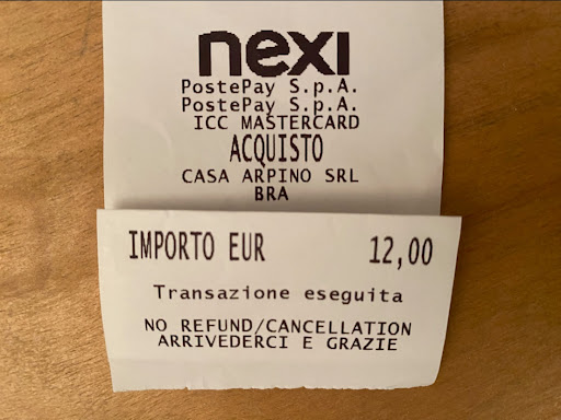 Casa Arpino is a café-restaurant with great food, great service, great atmosphere and very reasonable prices. No wonder they're quite busy. A good sign is that a lot of patrons are loyal locals which demonstrates they're getting a lot of things right. We started off with a 'tagliere' (literally a wooden cutting board), a big rectangular platter that was heaped by about 5 types of cold cuts: salami, mortadella, coppa, and 2 kinds of ham. I eat a lot of cold cuts and these meats were superior, which was a pleasant surprise because a lot of places will try to wow you with quantity or presentation only for you to realize they just served you some industrial low grade stuff. The platter included a good amount of bread sticks (grissini), wedges of a good mild cheese, and cubes of a spinach omelet. I couldn't believe it only cost 9 dollars. My Italian friends ordered pasta Amatriciana and were VERY pleased: they say the guanciale (roughly, a kind of bacon) is key to this dish. The quantity was also abundant and they brought us a nice, big wedge of cheese and a really good cheese grater so we could make it 'snow' on the pasta. Casa Arpino is in the town of Bra so it's no surprise that they offered burgers with Bra sausage, which is made of veal (vitello), and this is the dish I ordered. Although Bra sausage is traditionally eaten umcooked, these burgers were cooked, and served with sweet sauteed red onions, with a copious side of french fries. They were delicious, juicy and tender. The fries were good too, not underdone. Like a lot of places in Italy, the condiments they give you, mustard, ketchup, mayo, are in little packets; I would prefer fresh-made, but you can't have everything. The hamburger buns were good too, later I found out one of the owners is a baker and runs a separate bakery which explains why their baked goods are so fresh. One of us got a nice octopus dish (polpa) served on a bed of mashed potatoes, and we also ended up ordering a secondo of Guancia, which was a big hunk of calf cheek, with a nice dark brown sauce, succulent, rich. We accompanied this feast with a couple of bottles of Prosecco and 2 bottles of red wine, including one that really stood out, not sure if I remember correctly, but it might have been 'Angelo Nero.' Finally, we had a hazelnut tart, a typical piedmontese desert (after all, this is the land of Nutella!). This was a great meal and a great time. The service people were attentive, very friendly, and fast, even though the place was cracking full inside and on the terrace, and there were no mistakes...