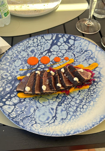 Read moreSiamo venuti per ferragosto, è stata una delusione. C’erano due menù fissi, uno di carne ed uno di pesce, che mi sembra più che accettabile dato che a ferragosto ci può essere un po’ di congestione. Se ci sono solo due scelte però ti aspetti almeno cibo di buona qualità, anche perché il locale dava i prezzi di un “ristorante” quando non c’era ne’ il servizio, ne’ la location e ne’ i piatti. Gli antipasti erano stati seguiti solo per metà, per esempio, la bruschetta doveva essere pomodorini e cipolle caramellate e quest’ultime non c’erano, e negli antipasti di pesce, dove c’era un’ostrica a testa, alcune sono state servite chiuse, senza il caviale presente invece nel menù. Il primo, un piatto di pasta, era tremenda. Sembrava pasta al sugo per bambini (foto per come ci è stata presentata). Il secondo di carne grigliata aveva alcuni pezzi di carne per alcuni crudi, per altri troppo cotti. Mentre i secondi di pesce avevano il pesce spada e i gamberi crudi (per tutti, anche gli altri tavoli si sono lamentati), e i gamberi avevano ancora l’intestino dentro (foto). Il dolce sembrava una presa in giro. Quando siamo arrivati chi stava al dolce aveva delle belle fette di cheesecake, a noi la fetta che ci è stata servita sembrava finger food.(foto). Sicuramente...