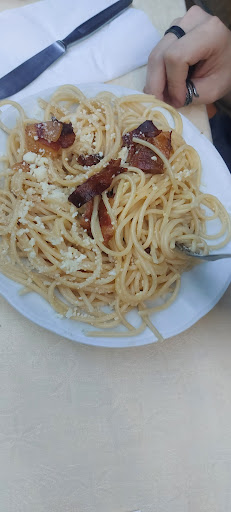 La trattoria Regina è entrata a far parte dei miei luoghi preferiti. Le ragioni sono legate al cibo ed al tipo di locale. È situata in una zona di Bracciano di facile accesso, però essendo in centro c'è da vedere se si riesce a trovare parcheggio. Il locale è segnalato da una piccolissima scritta in ceramica. All'interno è semplice ed essenziale. L'impatto è quello di essere in un ambiente degli anni'70, ma è piacevole e ispira fiducia. La sensazione di rilassatezza è fondamentale da mantenere. Questa è la trattoria tipica di una volta, dove si viene per mangiare in modo essenziale e senza complicazioni. Tutto è a misura d'uomo. Ci si siede e si attende l'arrivo di chi sserve a tavola. Il menù ha una discreta scelta di pietanze. È un menù classicissimo: antipasti, primi, secondi, contorni e dolci. Qui il marketing sta a 0 e la comunicazione riflette la realtà. Non hai voglia di cucinare a casa? Vieni da Regina! Attenzione, potreste non trovare quello che volte mangiare, perché, immaginiamo, dipenda dalla stagionalità e dalla effettiva disponibilità degli ingredienti. Potreste anche essere informati di pietanze nuove che non ci sono a menù. Diciamo che il menù è più un canovaccio che non un dato certo. Solo i prezzi sono quelli che leggete. Esattamente come deve essere in una VERA trattoria a conduzione di famiglia. Fatto l'ordine, mettetevi comodi e parlate. Buttate i cellulari e entrate in relazione profonda con voi stessi e chi vi accompagna. Finalmete tornate umani! Se ho ben capito, tutte le pietanze sono preparate al momento, qui i tempi sono quelli che avreste anche a casa vostra. Le pietanze sono ben condite, saporite e molto semplici. Le porzioni? Non essendoci marketing sono quelle che fareste a casa vostra. La pasta c'è nel piatto, la carne si vede che non è una "sperimentazione": qui si mangia! E si mangia bene! È una trattoria che ha le sue regole. Qui cliente e ristoratore sono in relazione. Il cliente se è oltremodo esigente, pretestuoso o pretenzioso, deve fare i conti con le regole del posto. Cucinare è faticoso, porta via tempo. Se siamo disabituati a questo è perché i ristoratori (quello che c'è in giro) si sono organizzati con pre-cotture, acelleratori di ogni sorta. Qui non c'è nulla di tutto ciò! Chi pensa che schiocca le dita e arriva il piatto è evidente che non ha chiaro che non è proprio cosi nella realtà se vuoi un puatto decente e non vuoi essere "raggirato" da chi ti spaccia per "cotto al momento" quanto ha preparato da giorni! Torniamo alle pietanze. Eravamo in tre abbiamo preso una carbonara ed un'amatriciana. Saranno stati 100g di pasta a piatto, condimenti giusti (bisogna mischiare bene con la forchetta! Come a casa propria!). Poi abbiamo preso una porzione di agnello alla cacciatora, una di saltimbocca alla romana e una di salsicce. L'agnello aveva la marinatura in olio e aceto di una volta!! Top!! Il saltimbocca sapeva di burro, prosciutto formaggio e ottima vitella. Porzioni?! Da trattoria! Due contorni: patate al forno e cicoria ripassata. Dolce tiramisù. 2 bottiglie di acqua. Costo complessivo 48€. Si paga solo con contanti ... ovvio. Altrimenti le commissioni del POS (che paga l'esercizio commerciale) sono soldi che vanno alla banca e non nel tuo piatto! È chiaro anche il messaggio wconomico che ci manda Regina? Si può uscire di casa per distrarsi, stare in compagnia e mangiare decentemente ... uscendo dagli schemi che da decenni ci stanno martellando il cervello! Regina è il luogo del mangiare semplice e dell'economia etica e sostenibile! W...