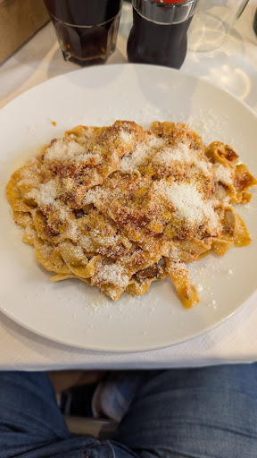 Read moreLa trattoria Leone è quel posto che desideri a pranzo di domenica, quello che ti fa venire la voglia di metterti in macchina, che all'ultima curva hai già l'acquolina in bocca. Dove puoi trovare delle fettuccine ruvide, spesse il giusto, rigorosamente tirate e tagliate a mano, condite col ragù che è stato sul fuoco dal mattino... ma perché non provarle anche al ragù di cinghiale, o perché dico io privarsi di quelle col guanciale croccante, fiori di zucca e pecorino. Una roba che ti stranisce le papille gustative, e ti fa dire... niente, non ti fa dire niente perché hai la bocca piena di meraviglia e in quel momento ci sei solo tu, quel piatto di fettuccine, e la goduria. Il menù, per quanto agile, è più ricco di quanto appena descritto, trovate la pasta fresca fatta in casa declinata nelle suddette fettuccine, ma anche in ravioli e gnocchi, nonché i secondi che spaziano dal coniglio alla cacciatora alle polpette, passando per la brace - io ho preso una bistecca, che ve lo dico a fare, era un burro. Se vi lasciate tentare dai dolci, è necessario chiedere direttamente della crostata crema e frutta, perché vi renderà più belli e più felici. Menzione speciale al servizio, estremamente cortese, puntuale e gentile. Io domenica prossima ci torno, ecco. Frase del giorno " Che fai, te...