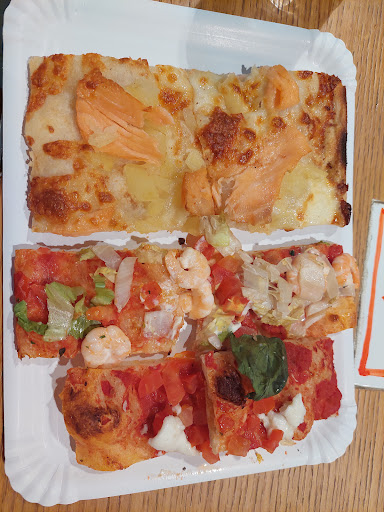 Read moreSituato all'interno del centro commerciale Iper, il locale è in posizione strategica rispetto all'ingresso, al parcheggio e al supermercato stesso. Ottimo per un pranzo veloce prima o dopo una lunga spesa; dispone infatti di uno spazio con una decina di tavolini, dietro alla vetrina del forno, ideali per rigenerarsi e gustarsi al meglio gli ottimi tranci di pizza, che vi verranno serviti caldi e fragranti. L'impasto è, infatti, croccante e ben sfogliato, perfetto per reggere l'abbondante condimento. Avrei dato 5 stelle se anche gli ingredienti del condimento avessero rispecchiato la qualità dell'impasto ma, purtroppo, avevano un retrogusto industriale, in particolare gli affettati. Nota di merito anche per le commesse: velocissime e gentilissime, abili a gestire il trambusto della pausa pranzo. Tutto questo, peraltro, vi verrà garantito a un ottimo prezzo: 2 tranci abbondanti si aggirano, infatti, sugli 8€ (chiaramente, dipende...