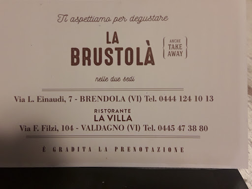 The Brustolà isn't a pizzeria. However, they transforms their thick bread bruschettas in 12 to 15 variety of delicious type of pizzas, with the best top of line topping. It goes great with the Rosè wine. Call to reserve your place, settle in because the service is a tab slow if you arrive late and they're full. Very customer's friendly. Prices are reasonable compared to what you get to...
