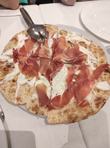 Read moreLa cortesia non è di casa, la fretta si. Premesso che abbiamo prenotato per un tardo orario (arrivati tra le 23 e le 23.30 di sabato sera), se questo fosse stato un problema avrebbero dovuto dirlo subito senza accettare la prenotazione. Arriviamo per motivi lavorativi in due momenti diversi a distanza di massimo 10 minuti. I primi arrivati hanno chiesto di ordinare il bere in attesa degl'altri, ma il cameriere in modo abbastanza seccato ha insistito per far ordinare anche le pizze perché, nonostante il locale fosse quasi vuoto, raccontava che "ci vuole tempo a impastare, preparare... vedrete che poi arriva tutto insieme". E invece in 5 minuti alla velocità della luce sono arrivati il bere e le prime 2-3 pizze, con l'imbarazzo di chi doveva cominciare a mangiare mentre gli altri che stavano arrivando dovevano ancora ordinare. All'ultimo che si è seduto a tavola ho sentito che il cameriere, con un po' il tono da "sbrigati che non ho tempo da perdere", chiedeva: "Tu sai già cosa vuoi o ti porto la lista?" [Prima volta che viene qui, magari se fai vedere una lista anche a lui, povero Cristo... e magari dagli del Lei che non è neanche un ragazzino]. Mangiando sempre monitorati per intervenire il prima possibile, verso fine pasto, a chi era quasi all'ultima fetta veniva già chiesto se potevano portar via il piatto. Il fantozziano Maestro Canello che tirava avanti le lancette al veglione di Capodanno era un principiante a confronto. Almeno la signora che a fine cena ha portato i limoncelli è stata gentile, rimediando un po' al comportamento di chi ci ha servito. Nell'uscire a fine cena, in cassa, ci hanno detto, come per scusarsi, che all'indomani avrebbero avuto un'altra giornata pesante. Ok, capisco, ma ci dobbiamo rimettere noi? Anche tra noi c'era gente con la sveglia alle 5 all'indomani, ma non ha fatto pesare a nessuno il fatto di aver lavorato fino alle 23. Se fosse stato un problema servirci a una certa ora sarebbe bastato non accettare la prenotazione, ma sicuramente prendere qualche altro centinaio di euro a fine serata ha fatto comodo. Per quanto riguarda le pizze nulla da dire sugli ingredienti, buoni, mentre la pasta non l'hanno particolarmente apprezzata in molti. Da menù le pizze costano quasi tutte fra i 12 e i 26 euro... ok gli ingredienti di qualità ma comunque un po' care considerando l'impasto migliorabile e il fatto che chi ha ordinato pizze con ingredienti a freddo le ha ricevute un po' troppo fredde...