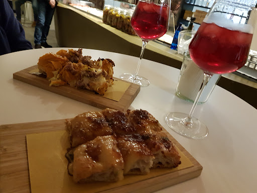 Attratti da un articolo che parlava di questo locale per alcuni riconoscimenti ottenuti, essendo oggi a Brescia per una visita al Museo Santa Giulia, ci siamo fermati qui per un aperitivo. Il locale non รจ grandissimo. Avrร forse una decina di tavoli. Appena entrati sulla destra cโรจ il banco gelateria mentre piรน avanti il banco con esposte delle pizze/focacce. Abbiamo fatto un aperitivo con un cocktail alcolico della casa (molto buono) con una pizza margherita inclusa nellโaperitivo e poi abbiamo preso altri tre pezzi di pizza. La pizza รจ molto morbida e lievitata, ma allo stesso tempo croccante. Ci sono diverse farciture e tutte quelle provate erano ottime. Unica nota negativa รจ che non รจ esposto neanche un prezzo e non ci รจ stato consegnato un menu. Ad ogni modo, leggendo vecchie recensioni dove ci si lamentava del prezzo, posso dire che per quanto mi riguarda il prezzo รจ invece onesto. 2 cocktail con pezzo di pizza margherita รจ costato 10โฌ. Ogni pezzo di pizza aggiuntivo รจ costato invece 5โฌ (la grandezza del pezzo รจ visibile nella foto). Certo in un forno un pezzo di pizza cosรฌ lo si paga molto meno, ma si nota che dietro cโรจ un buon lavoro sia con la pasta e sia con le farciture che sono spesso particolari e che non si trovano da nessunโaltra parte. In foto focaccia con stracciatella e crudo (che si...