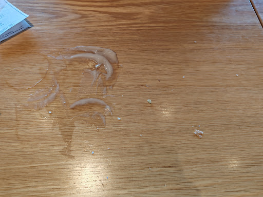 Tavoli macchiati e sporchi. Nessuno passa a pulire o comunque molto raramente.