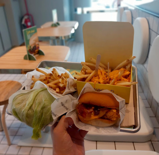 Read moreAnche se sapevo che il pane di Bun Burger non è vegano perché contiene latte, dopo aver letto recensioni contrastanti ero curiosa di provare personalmente . Avevo qualche riserva sul Protein ma il burger beyond (delizioso) accompagnato da pomodori, cipolle e cetrioli, avvolto da freschissima insalata si è rivelato una piacevolissima sorpresa e con le patatine strabuone mi ha senza dubbio saziata.... Insomma: esperienza decisamente positiva da ripetere presto.