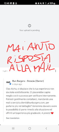 Ringrazio bun burger per aver PROVATO a far eliminare la mia recensione per cosiddette "falsità", dopo che ho riportato che si erano dimenticati la mia bibita in un ordine deliveroo e che il numero fissato qui su google è inutile perché non è il numero diretto del posto ma un numero generale non raggiungibile. Avevano pure fatto i finti interessati dicendomi inizialmente di scrivergli per mail e risolvere, mail a cui non hanno MAI risposto dal 30 novembre. Oggi improvvisamente mi arriva una mail con scritto che la mia recensione non può essere postata per falsità e possibile manipolazione del rating del posto. Il che non me ne può fregar di meno. Gli errori sono ammissibili quando uno ordina direttamente al posto e può rimediare subito, non quando uno ordina a domicilio e si arrangia con l'errore. Ne ho venti di mail e continuerò a lasciare la stessa recensione finché non riceverò risposta per...