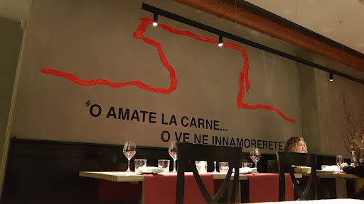 Sulla qualità secondo me si pecca un po', perchè un Tbone del nebrawska allevata con solo fieno, non può avere un sapore dimenticabile. Filetto quasi inesistente, controfiletto poco saporito, e con una tenacità medio alta per quel taglio. La cosa poco carina è che ho chiesto di consigliarmi una carne che fosse gustosa, marezzata e con una buona quantità di grasso di infiltrazione tra le fibre, a temperatura interna di 50°C, proprio perchè in un posto chiamato CARNE e spirito, bisogna anche lasciarsi consigliare pur sapendo cosa si sta cercando. Ora, se mi vendi una costata alla fiorentina da 90€ al Kg, devi sapere per filo e per segno cosa ti sto chiedendo: non mi è sembrata una carne gustosa, ricca di grasso tra le fibre, proprio per il fatto che, se non varo errato, un'alimentazione a solo fieno non porta a sviluppare internamente grandi quantità di grasso quanto piuttosto va ad innalzare il valore nutrizionale del prodotto.