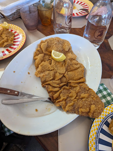 Read moreTrattoria storica, semplice ma raffinata, piacevolmente bolscevica e LGBT-friendly, ma con almeno due piatti che possono tranquillamente essere top mondiali: i casoncelli e la cotoletta. Purtroppo non conosco gli altri, perché da 35 anni invariabilmente mi dico che dovrei assaggiare anche qualcos'altro ma finisco sempre per ordinare casoncelli e cotoletta. I casoncelli sono con pasta superfine, ripieno di carne, formaggio, verdure, al burro versato e salvia. Non hanno eguali. E' tutto speciale: la pasta, il ripieno, il burro e pure la salvia. La cotoletta è di dimensioni asburgiche, circa 30cmx30cm, di vitello battuto, con una impanatura croccante e asciuttissima, per nulla unta. Vengo da anni, la mangio anche la sera e non ho alcun problema di digestione, e dormo come un bebè. Cosa che non mi capita altrove. Conto finale in due circa 40 euro con due birre, acqua gasata e caffè. Tornerei...