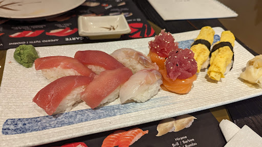 Read moreAggiornamento recensione: mi rammarica riscontrare che con il cambio location è peggiorata la qualità del cibo, è sparito il sapore! Tonno, branzino, salmone tutti senza sapore, insipidi. Gamberi rossi non dolci, leggermente saporiti e non dolci come dovrebbero essere, ma vabbè son delicati direte voi, e no invece, li ho mangiati svariate volte sia alla carta e anche agli allyoucaneat li conosco bene. Scampi corposi ma anche questi poco saporiti anche se comunque meglio dei gamberi. Zuppa di miso slavata, solo salata ma non saporita. Nighiri con troppo troppo riso di scarsa qualità,in bocca diventa colla, e per niente saporito. E come l'altra volta non c'era né il rombo, né la ricciola, né l'otoro. Una vera delusione. Forse il cibo cotto è molto più buono ma io vado per mangiare crudo e qui non ci siamo, peccato, ora è comodo con parcheggio e locale carino arioso. Un consiglio: meno piatti sul menù e più qualità e diminuite il riso dei nighiri!